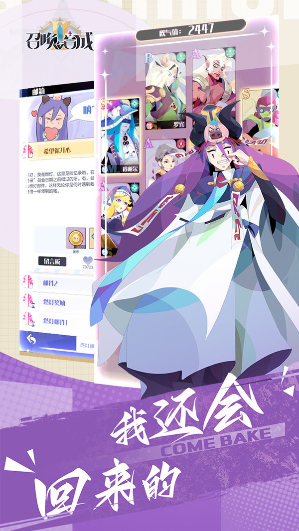 《召合2》是一款普普通通的消除与放置卡牌游戏,没有什么太大特色,相比于《召合1》,本作会有一点点小小的进步。在当下充满挑战和困难的时代里,期盼你能在闲暇时光,可以在我们的《召合2》中获得许些平静、感受到一些快乐和温暖。