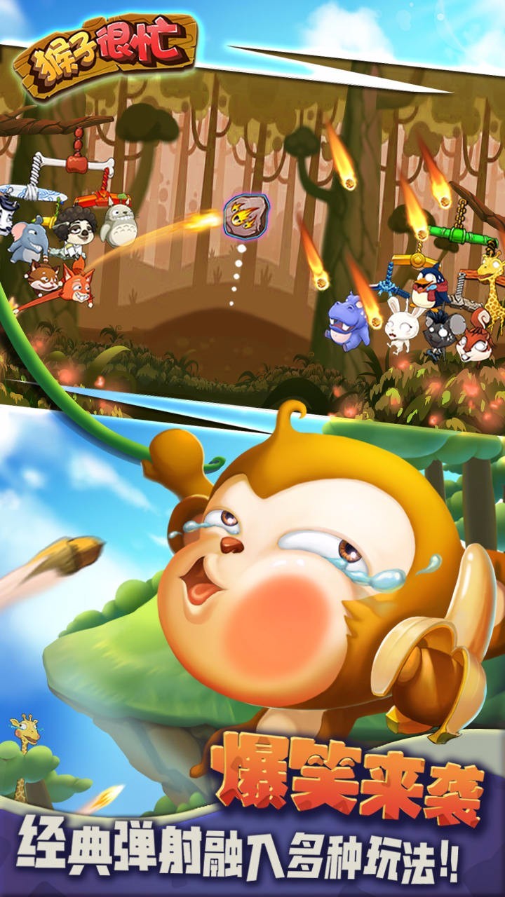 《猴子很忙》是一款2D弹射对战游戏。在这里,50多种动物、多种阵型任你搭配!每种动物都拥有自己独特的攻击手段,有一百种办法把对面打烂!策略至上的同时,打得准才是王道!排位赛、香蕉乱斗、冒险模式,玩法多的让你根本停不下来!好友对决欢乐无比,到底谁才是打的最准的那个?一局对战立刻揭晓!