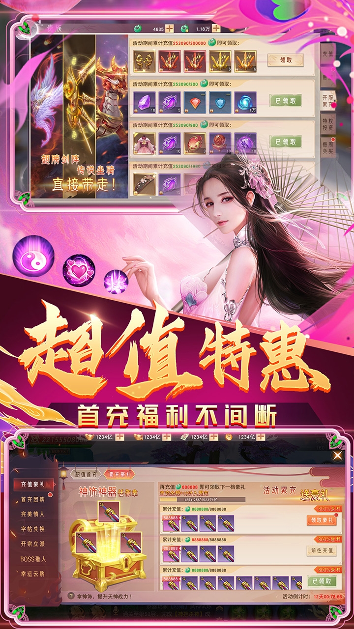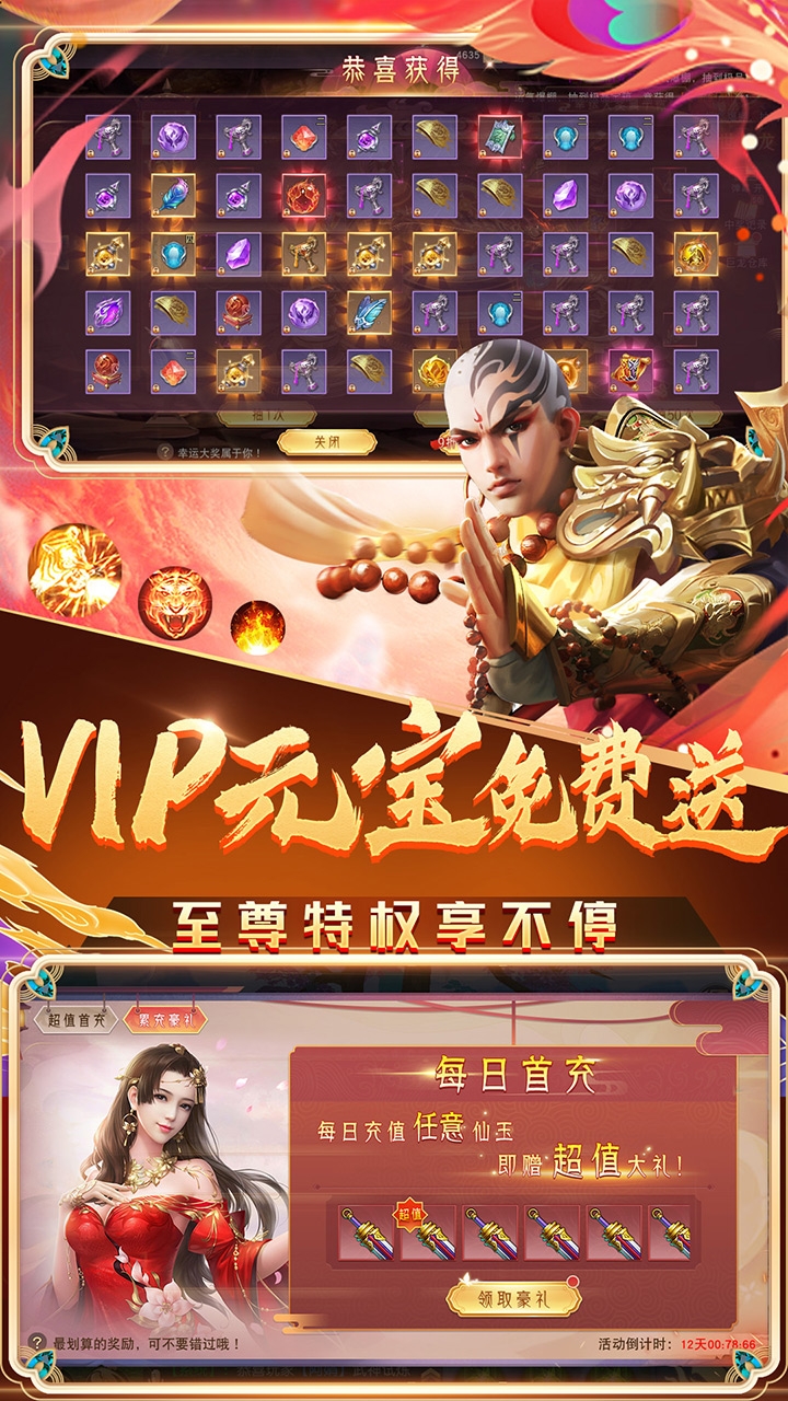 648:红色1星神兽装备随机包*1、曜日玄铁礼盒*1、神源粉晶*1、召唤令*2、绑定仙玉*240、元宝*1200、坐骑祝福卡*4、坐骑进阶丹*120、炼魂灵玉*20