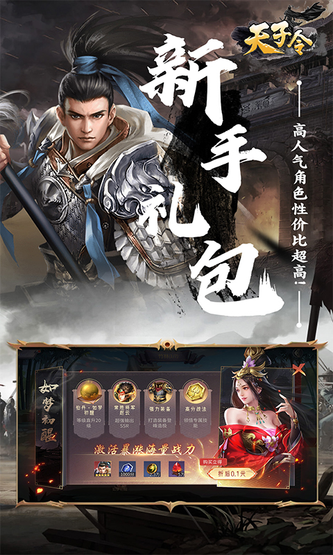 单日累充1000元:神魔5星武将随机*1,高级招募令*50,9星升星卡·武*1