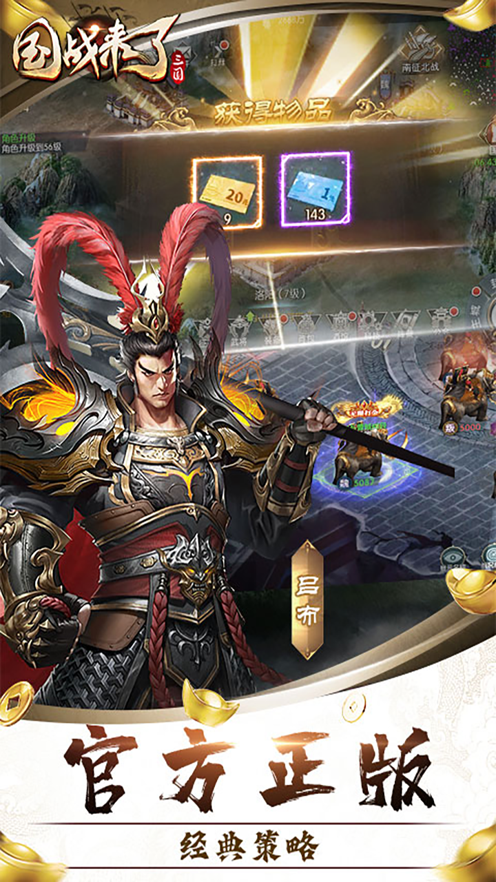 累计充值500元(实付5元):进阶石*70、军令印*10、武将经验*500000、1级宝石包*5