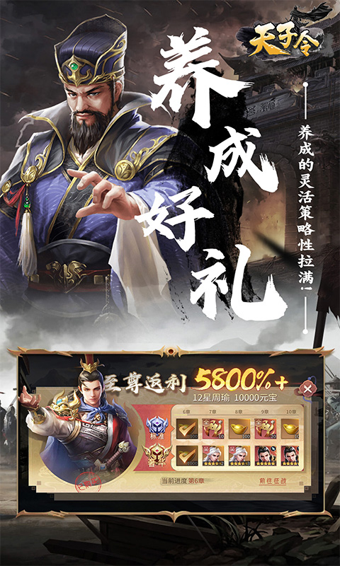 永久累充10000元:5万幻化战法*1,5星武将随机*3、聚贤令*10