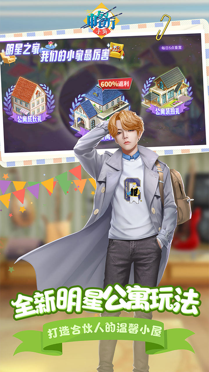 芒果中餐厅,线上开业啦!《中餐厅》是湖南卫视同名综艺全季正版授权手游,你将化身为一位餐饮行业的职业经理人,带着梦想和对未知的挑战,从浪漫的泰国象岛开始经营中餐厅。招聘明星合伙人,装扮餐厅,不断研发中式菜谱、精进厨艺,努力让更多的人品尝中华美味,将东方美食文化传遍全世界,你准备好了吗?
