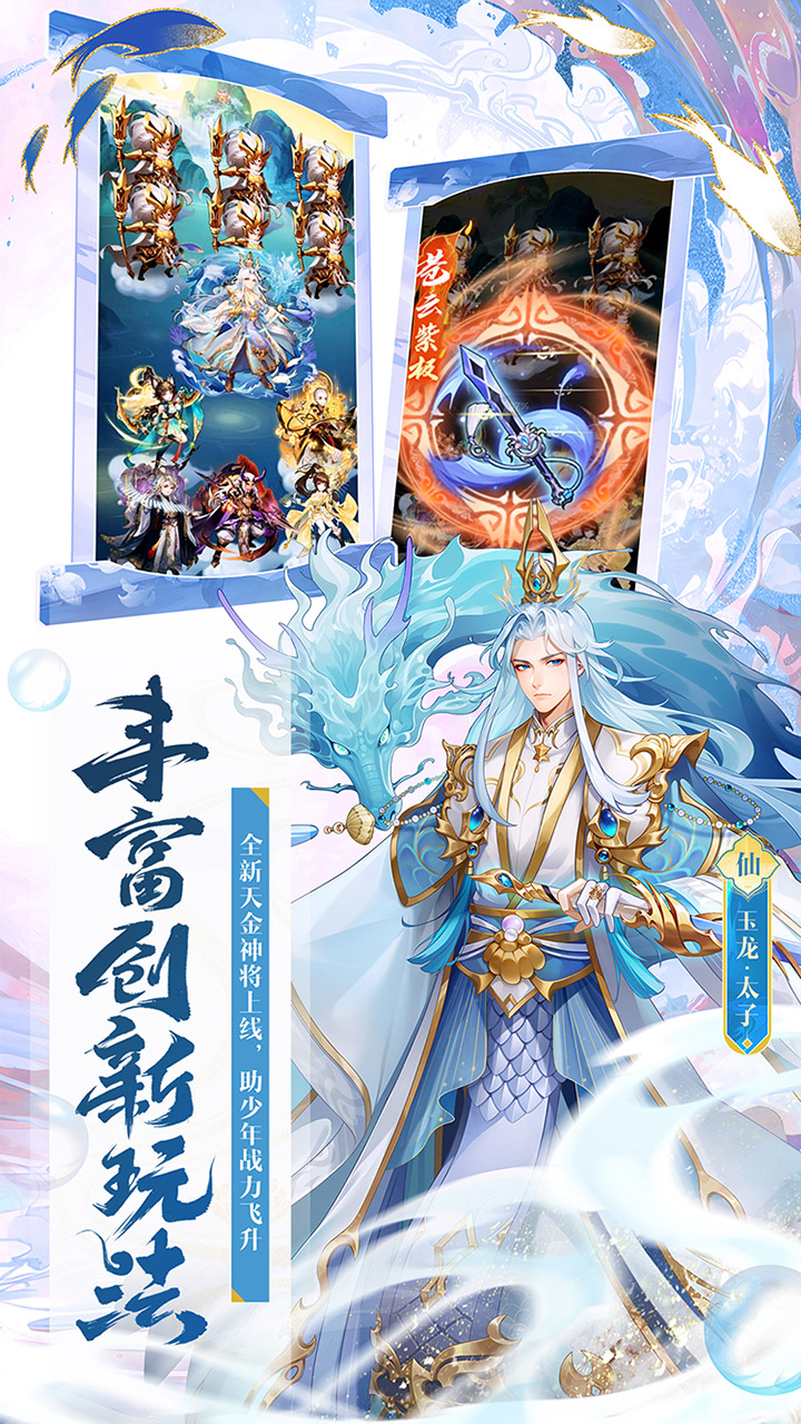 【全新版本:镜改朱颜】一曲飞龙寿天地。空江百里见潮生!逍遥三界,倜傥不拘!《少年西游记》最新版本【森罗逆旅】震撼上线,全新第三代天金神将玉树风流,绫罗登场!全新品质天金神将玉龙·太子、齐天·悟空、小青·小紫即将登场,超精美动态立绘,实战拥有极高的爆发输出能力和不俗的生存技能,全面提升你的阵容强度!同时全新组队拉人活动上线!【同享豪礼】活动开启,新老少年共享奖池,周年大礼,天金品质奖励拿到手软!超丰厚奖励,层层叠加,更有全民瞩目的诸神争霸,闯三界、赢实物奖杯!方寸山禁地扩展,宝物天星一键优化、战力计算公式更新以及商店奖励调整等。多重优化,只为等你归来!