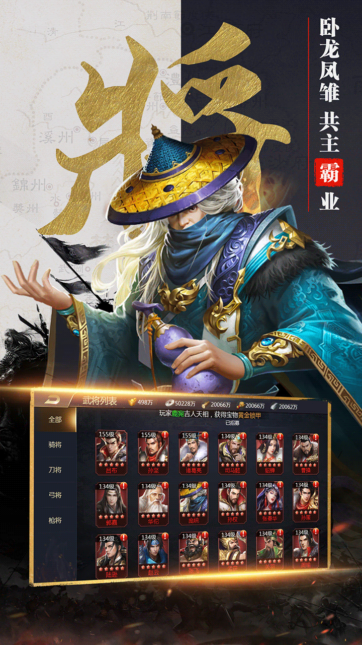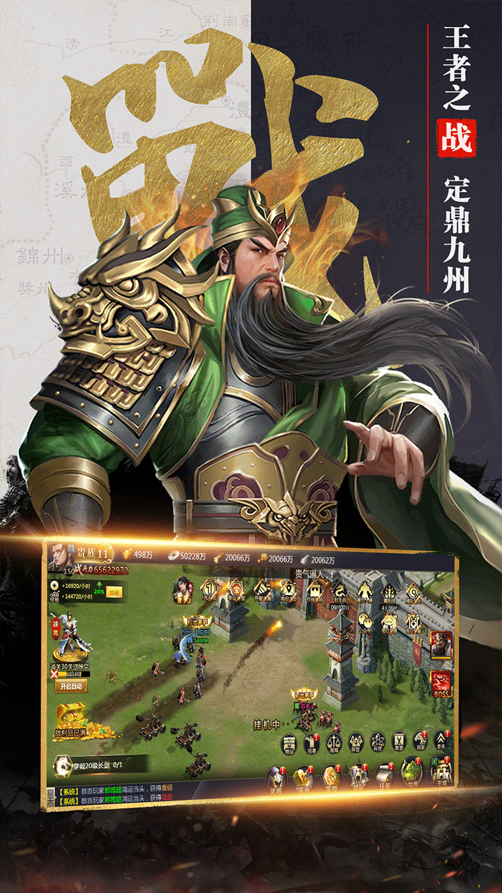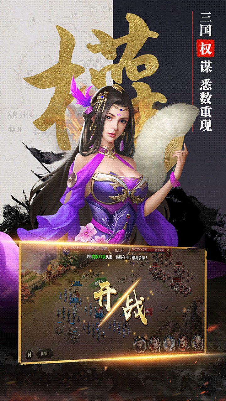 2020年殿堂级写实画风大作回归!离线也能打怪升级的三国题材的挂机策略国战游戏强势登陆!令你身临经典的三国剧情,招募三国名将为自己所用,以你君主之才能排兵布阵,与诸位乱世枭雄斗智斗勇,最终成就三国一统之伟业! 【游戏特色】 ——枭雄之战 定鼎九州 搭配阵容,放置托管,自动推图,离线也能打怪升级! ——卧龙凤雏 共主霸业 千余位三国名将静候招募,四大兵种配置,升级、强化、组合卡牌完美融合,攻防