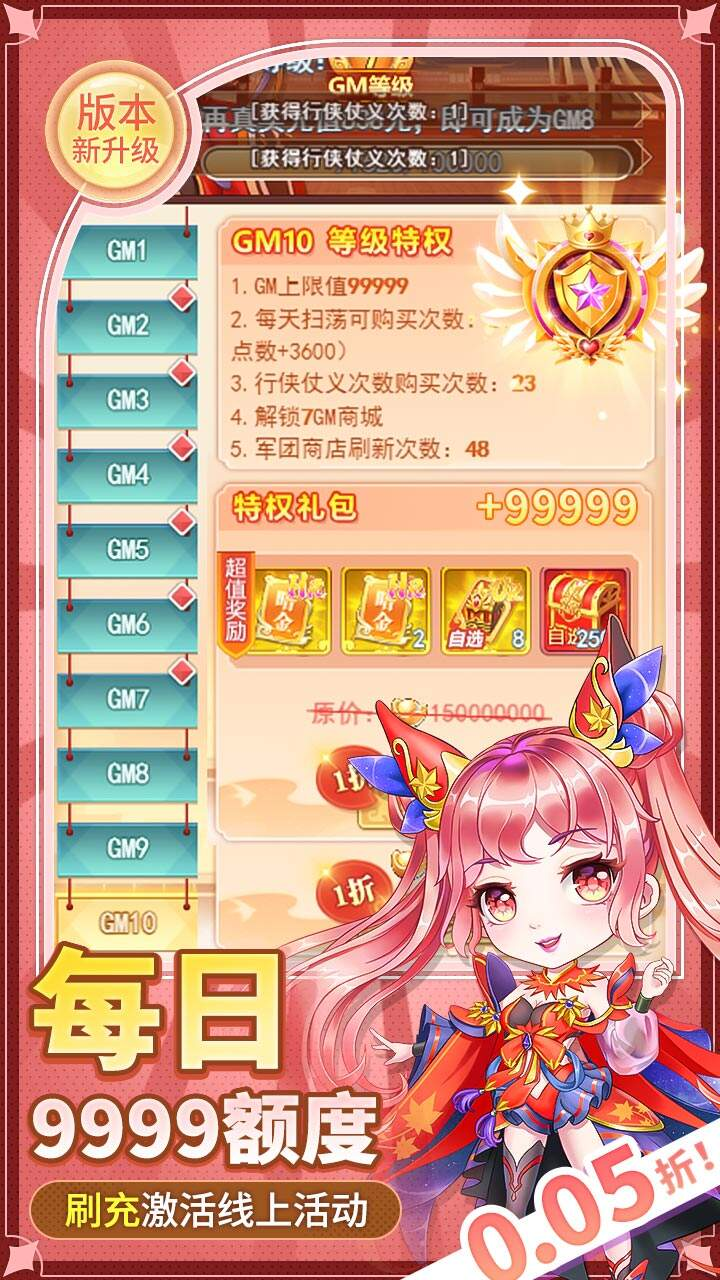 历史累计充值20000元:皮肤(天使之心美少女)、九星暗金神器任选*6、觉醒石*8000