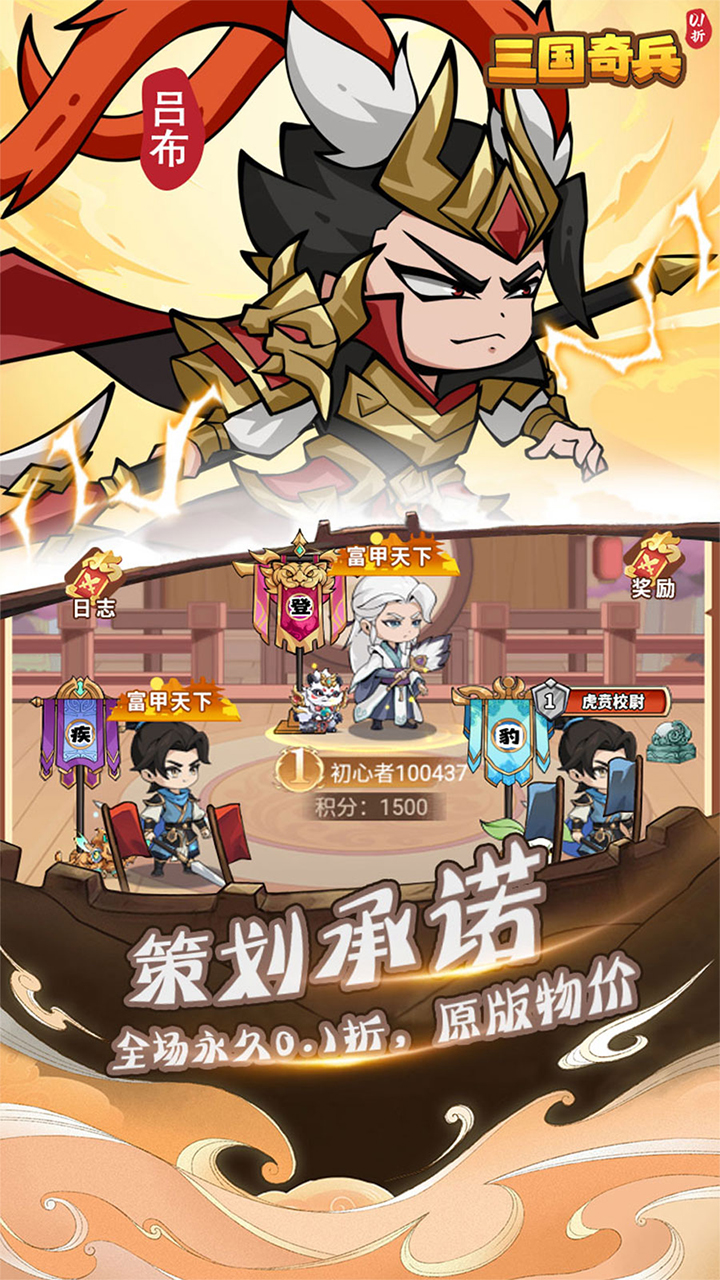 《三国奇兵》是一款以三国题材为背景的放置休闲游戏,点击屏幕简单的操作通关玩法,开启自动挂机模式海量装备自动获取,结合搭配山海神兽助战和著名的三国武将驰聘战场。游戏还有非常轻松的钓鱼趣味玩法,海量鱼种等你来探以及丰富的pvp团战跨服玩法