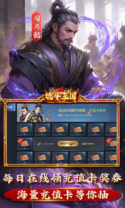 《魂斗三国》首发精品卡牌三国策略游戏。游戏新增充值0.1折优惠,上线即送2021充值,每日签到可获得百连抽和无限抽卡!玩家可以在同一张大地图上与他人竞争,通过策略和实力来决定胜负,胜者为王,败者为寇!竞争过程中可使用空城计、奇门八卦等计策助阵!也可单独行动或与其他玩家结盟共同作战!游戏内还原真实天气系统以及地形关卡设计使得游戏更具挑战性和策略性,为你带来沉浸式的游戏体验。