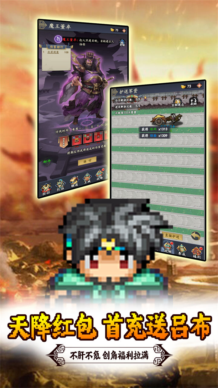 1、如何获取红色武将可以通过军团中的商店获得2个红色武将,然后在游戏第七天登录奖励中获得1个红色武将,这样你就有3个红色武将了,然后在荣誉商店中收集剩下的3个红色武将,有时间就去多打竞技场,全红阵容只要你肯努力就可以收集齐的。当然首充也送1个红色武将。