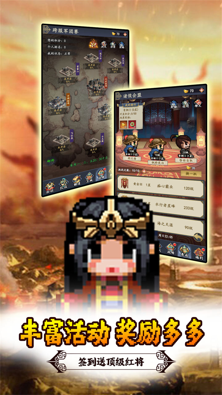 7)军团战:这个主要看军团强不强,第一的军团有200元宝。