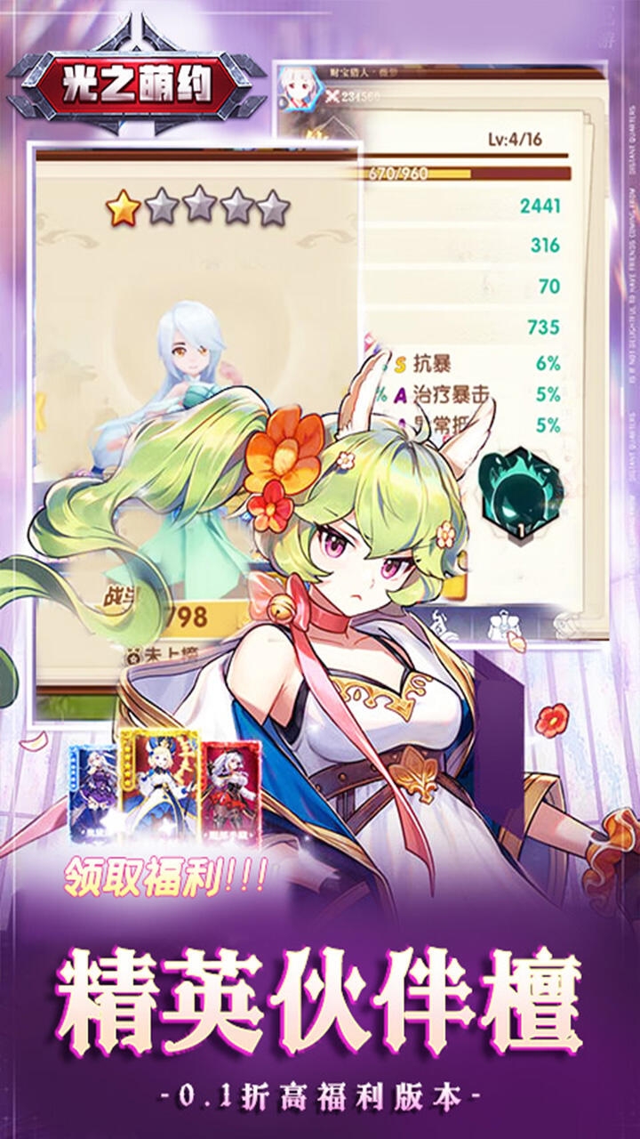 你的世界,从此开始!日系二次元卡牌手游是一款综合了角色收集养成、横版卡牌、合作挑战等玩法的二次元卡牌类手游。游戏画面精美华丽,角色立绘惊艳萌动,日系风格媲美动漫,背景宏大设定别致,立体呈现绝美的幻想冒险之旅。