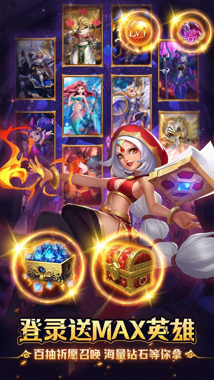 礼包1:全能英雄宝箱x50、英雄技能选择箱x10、圣器宝箱x200