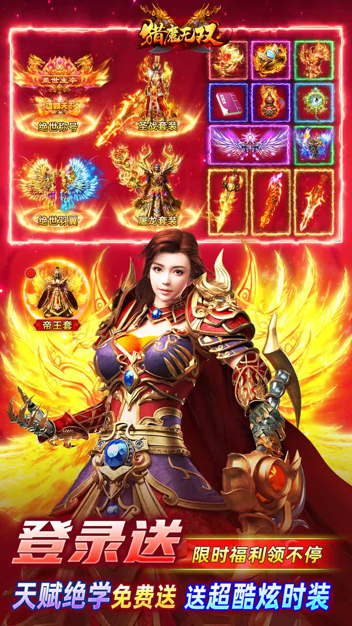 《猎魔无双》打造独特天赋流派新版本,三大流派自由选择,无需付费,开局福利拉满,灵符全返!每日登录在线领充值红包!炫酷时装还能上线赠送!免费会员!平民友好!绝对是你没见过的全新版本!复古回归,热血重燃!准点攻沙,等你来战!