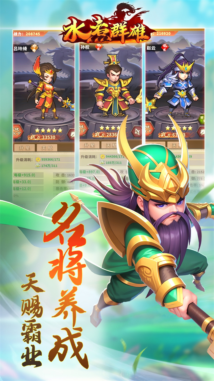 《水煮群雄(原价无限0.1折)》一款放置挂机玩法的三国卡牌游戏,轻松不伤肝,不氪也能玩得爽!不同的武将阵容,搭配上千变万化的自定义技能,让每一场战斗都能体现主公的谋略!还有远征、奇物、星盘等创新玩法等你来挑战!三国是什么?是临江仙词"滚滚长江东逝水,浪花淘尽英雄”的豪气,也是"古今多少事,都付笑谈中""的洒脱,更是“出师一表真名世,千载谁堪伯仲间”的遗憾