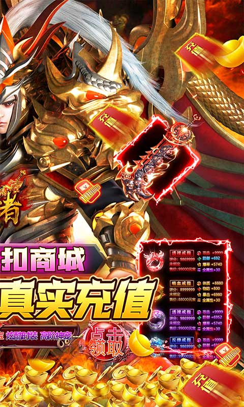 经典挂机传奇《皇者》是款深受百万玩家喜爱的高爆高福利游戏!上线送满vip15,百万元宝,绝版时装套!游戏内新增代金卷,可用于RMB进行抵扣,无需任何真实充值!绝对白嫖福利版本、全部免费无限送!福利全新升级,千倍投资,永久年卡超值豪礼领不停!同时带来全新玩法---亚特兰蒂斯,深海巨兽夺取海神神器,即可制衡新世界秩序,空间之门即将打开,迎来新的腥风血海!快唤回曾经的兄弟们一起战斗吧!荣耀归来,再创传奇!