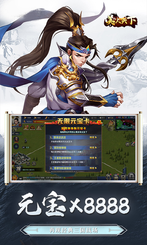 高级招贤榜*10、3级宝石袋*1、大体力丹*10、大军令包*10、升星石*50