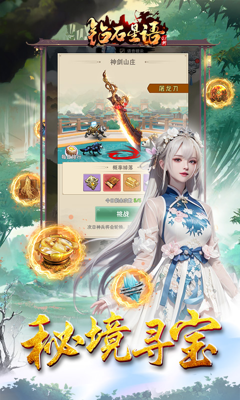 《钻石星语》是一款以武侠为背景的游戏。游戏中拥有养成、打斗、社交、互动等各种丰富多样的功能,拥有独家特色玩法。天下风云出我辈、一入江湖岁月催。开局一辆小马车,少侠开宗立派统御武林。 游戏中采用了大量的写实场景,富有武侠元素,提供了别具特色的收集神兵、修炼阵法、领悟传承、修行心法绝技等系统玩法,带给玩家各种酣畅淋漓的游戏体验和乐趣。
