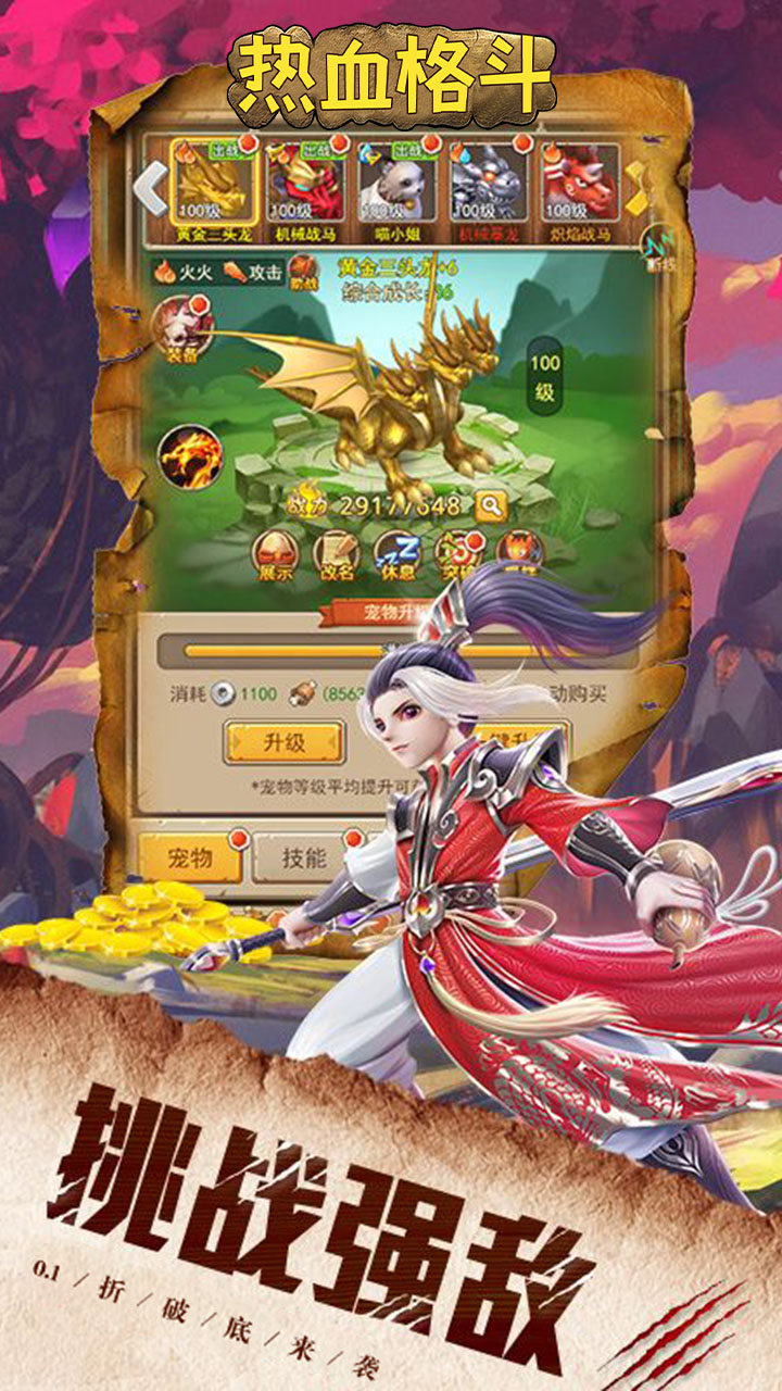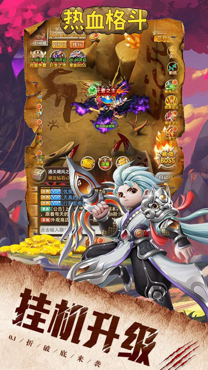 《热血格斗(0.1折福利版)》是一款倾力打造的回合制Q版游戏。游戏中玩家将扮演一名初出茅庐的勇者,在一片被战争摧毁后的荒芜世界中不断探索。探索的过程中,玩家可以招募各种强力乖萌的宠物和伙伴,一起踏上未知而精彩的冒险旅程。生机勃勃又蕴含着危险,将给玩家带来前所未有的奇幻体验。