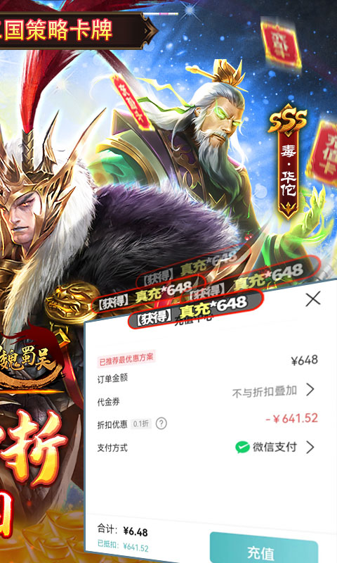 3.登录7日免费领5星红将关羽,每天领100连抽,各路武将应有尽有,海量元宝道具领到手软!
