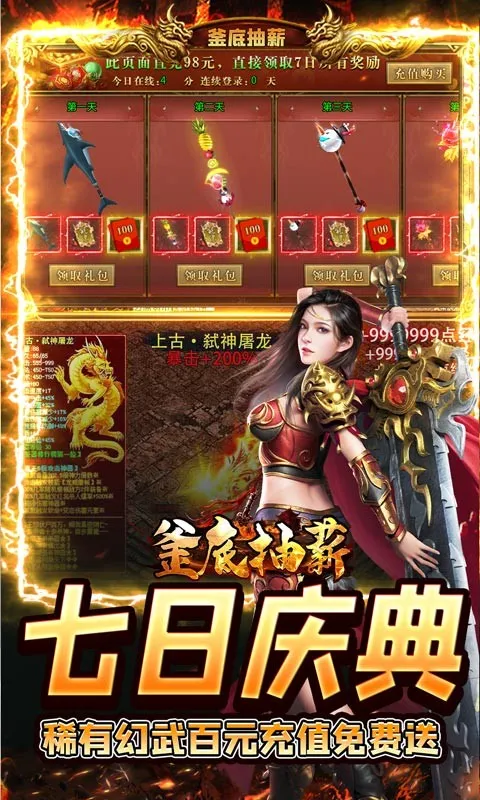 ★4、七日庆典:七天登录赠送百元红包,炫酷坐骑,冠名激活卡,激活冠名领取丰厚冠名奖励