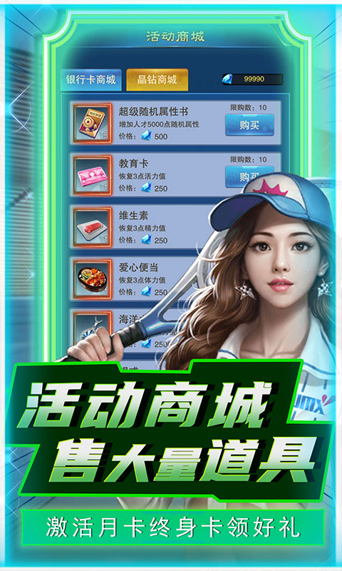 上线福利:10w金钱、10w商业经验、10w商品、10w晶钻