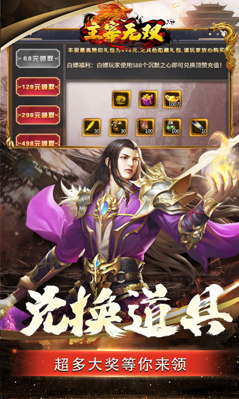 服务器冠名:平台单日真实充值达1000元可拥有服务器冠名权,冠名奖励合区前主城‘冠名使者’npc处自行领取(请各位玩家达到要求及时领取,未及时领取不予补发)
