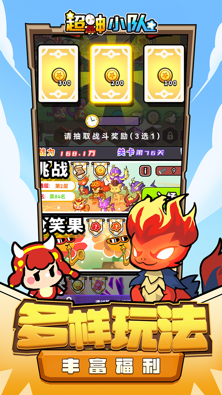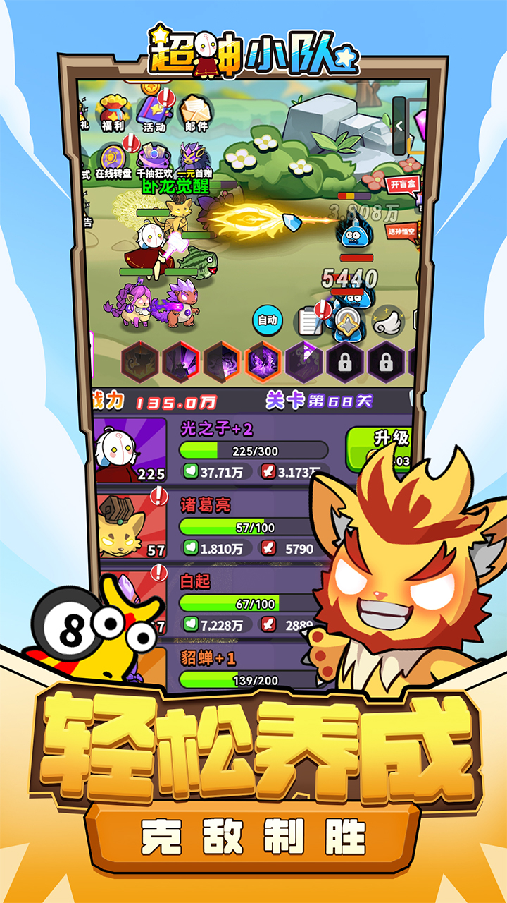 《超神小队》是一款挂机类小游戏,佛系玩法,轻松游戏,海量福利,随玩随停护肝又养肝,惊喜与奖励等你来探索!