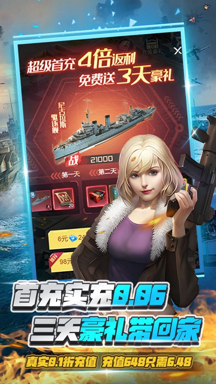 单日折后实充1000元: 紫金战舰碎片任选*80、紫金装备任选*4、紫金舰炮任选*2、紫金导弹任选*2