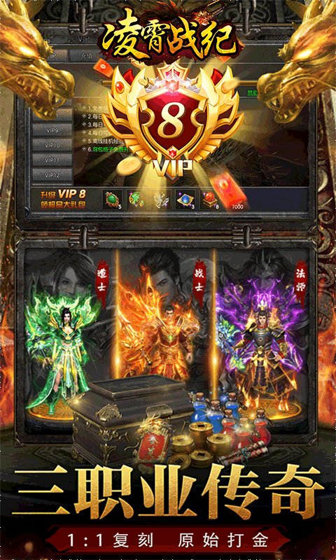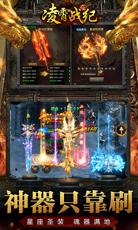 《凌霄战纪(0.1折无限刷)》是一款精心打造的复古三职业传奇,还原传奇世界经典设定,战、法、道三大职业决战玛法:自由PK、死亡掉落装备、练级打宝、行会战与万人激情皇宫攻城战!千人同屏激爽战斗,万人攻沙实时语音,带来最真实的战斗体验,和兄弟一起浴血奋战,续写传奇新篇章!