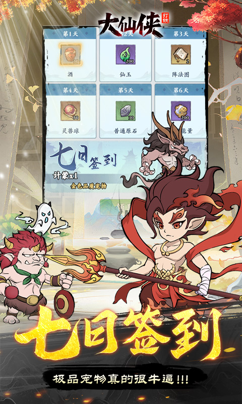 单日实付1千额外:仙玉*10000、加速卡*300、阵法灵石*150、酒*1000