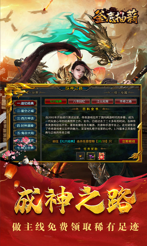2、成神之路:完成简单杀怪任务,即可获得稀有足迹,巨额红包