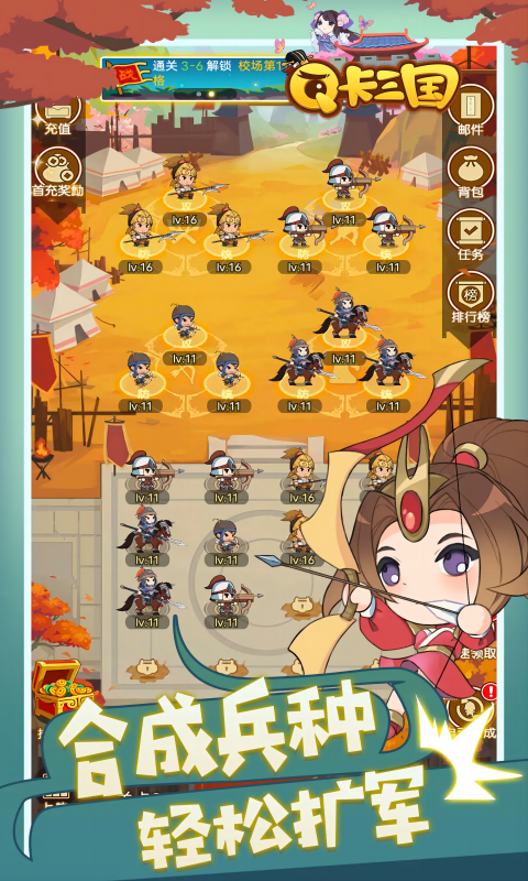 Q卡三国是一款采用双屏战斗的策略养成三国题材游戏,战争感十足。游戏采用了市面上极为罕见的武将与军队分离养成的玩法,而在战斗中分屏两端摆开阵势的大军对战也是极富视觉冲击,无论是骑兵的冲锋还是弩兵弓兵的齐射,亦或是步兵在最前线义无反顾的承受伤害,都在淋漓尽致的演绎着古代战争的残酷与激情。
