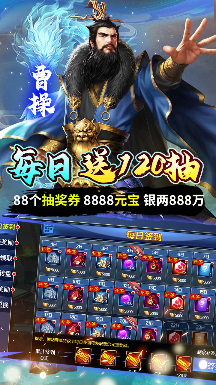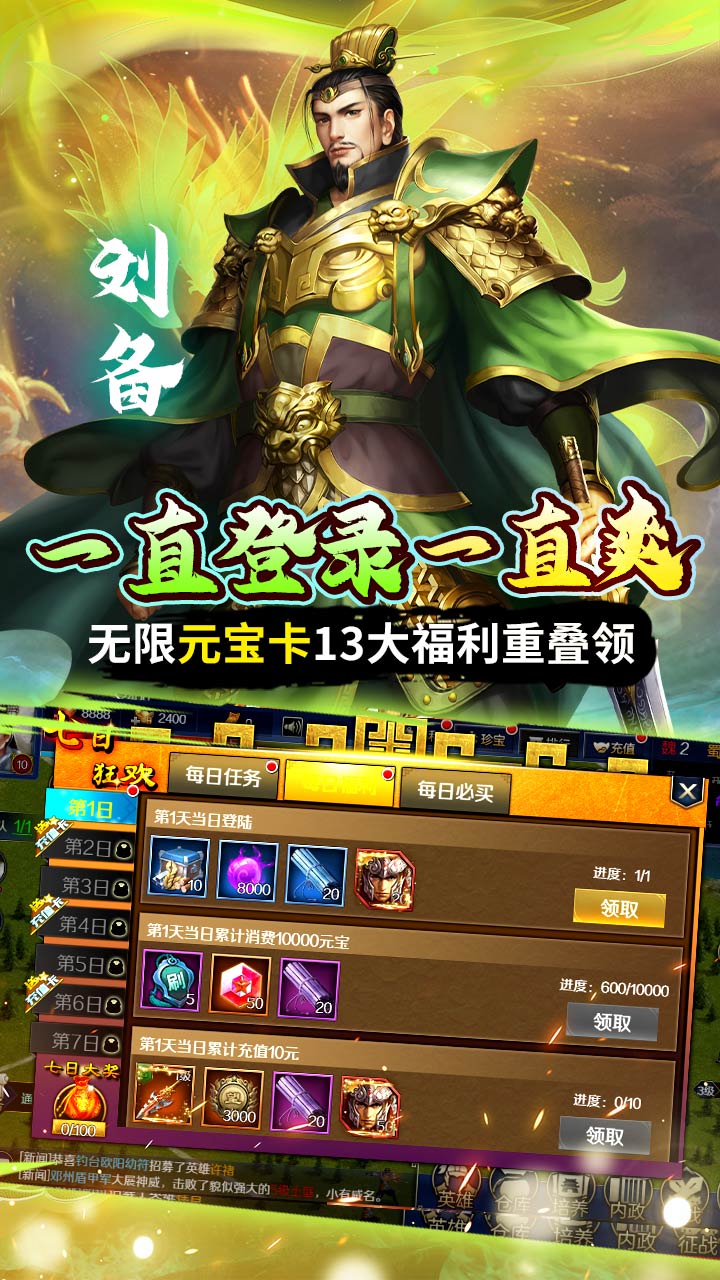 永久累计充值10000元(折后50元):英雄进修礼包*50;神将抵用卡*1;红色魔器碎片*100;8级宝石袋*1