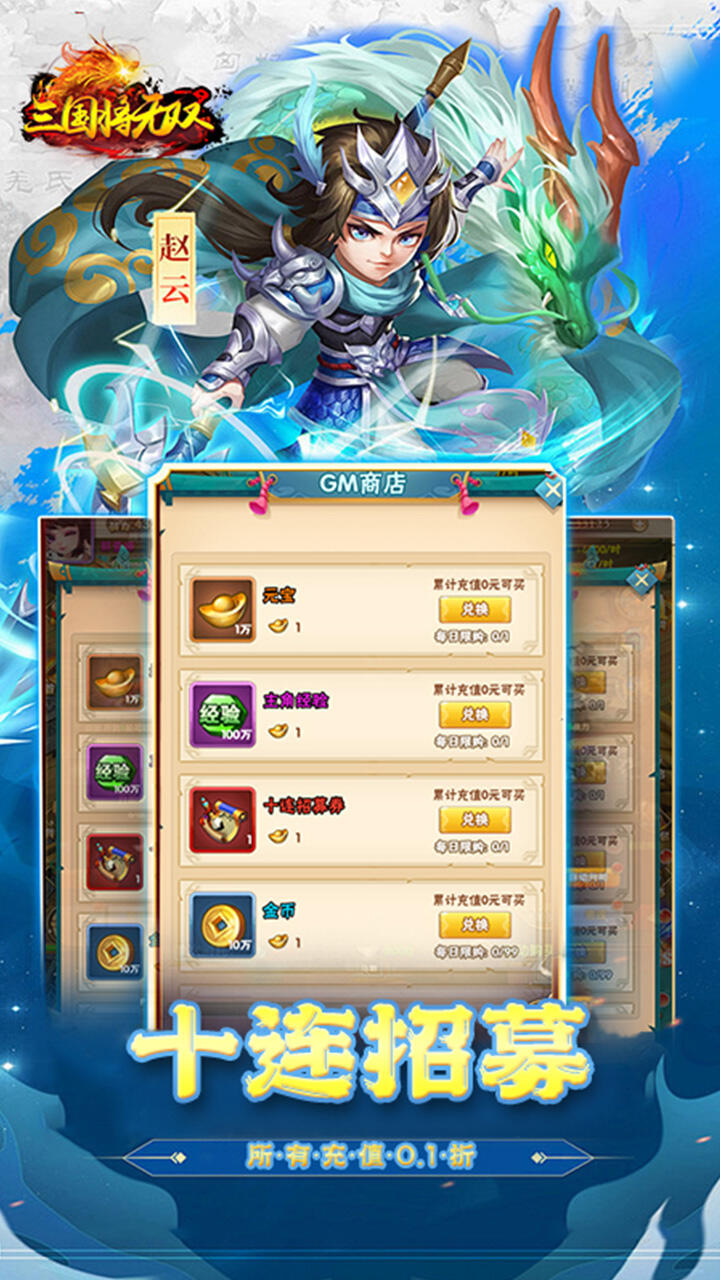 十连招募券*200、中级战宠粮食*800、突破石*2000、画戟无双*400、常胜赵云激活卡*2