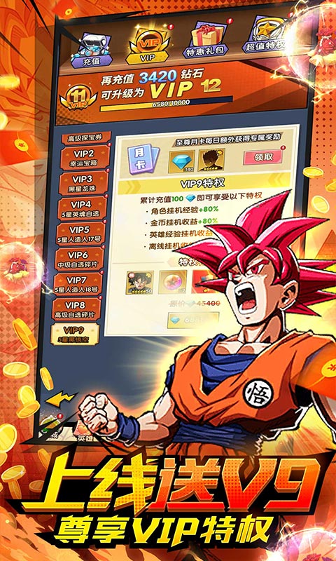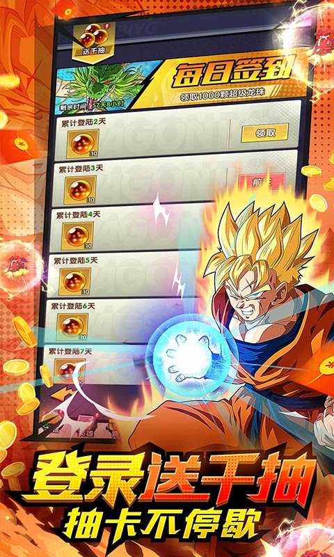 | 单日充值1万元(实付100元) | 自在极意孙悟空碎片*3 | 随机1星红装礼包*2 | 三系5星自选礼包*3 | 高级龙珠*30 |