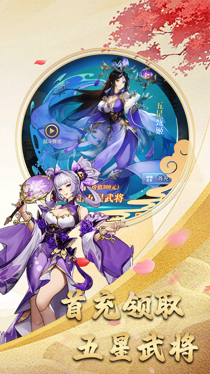 | 首充礼包 | 5星随机碎片*50,银两*500000,武将经验*500000,高级招募令*30,高级探宝券*30,进阶石*500 | 10000个 | 首充任意金额 | 永久 | 一码一用、单个角色不可重复使用 |