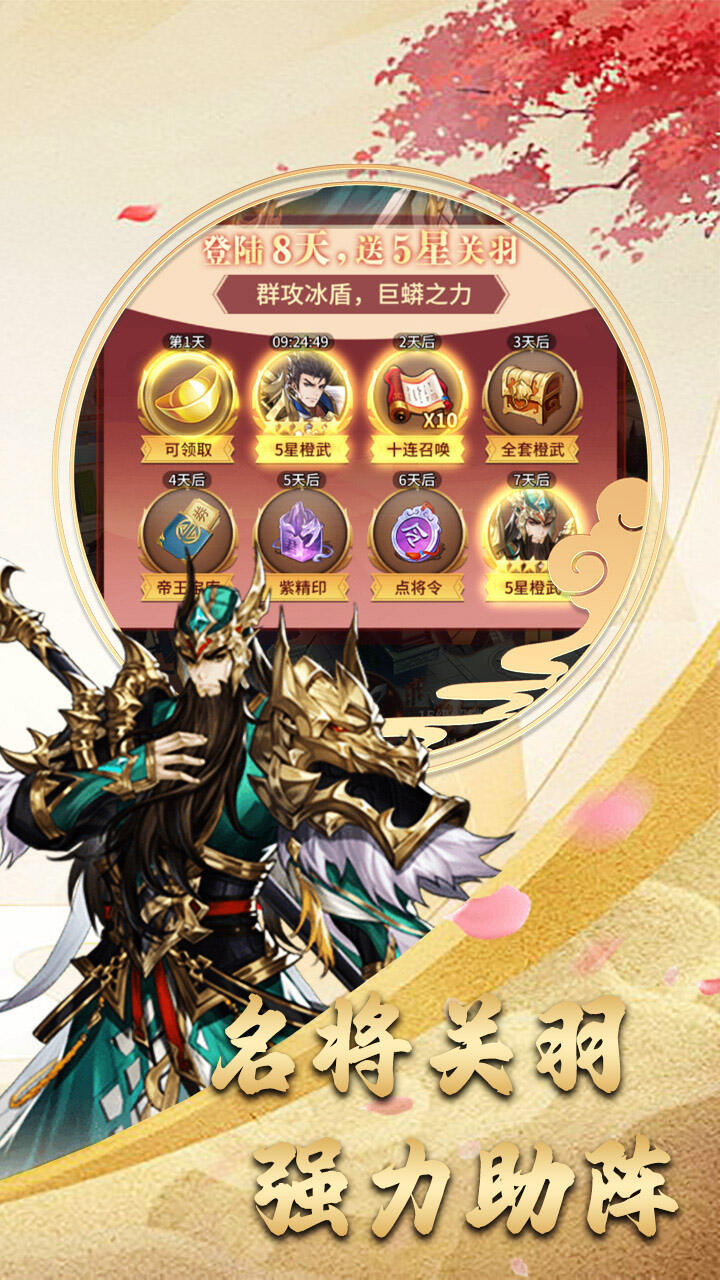 《兵临三国》是一款三国题材的放置卡牌养成游戏,游戏中精美的卡牌立绘再现百位经典英雄名将,满足收集控需求,武将多种阵营属性自带个性技能,让你运筹帷幄智慧搭配,轻易掌握策略战斗的乐趣,养成设计丰富又轻松,还可以拥有各类灵兽搭配上阵,锻造神器穿戴红装,各类军团战国战跨服战缤纷等你开打,来兵临三国开启你的兵家战争世界吧!