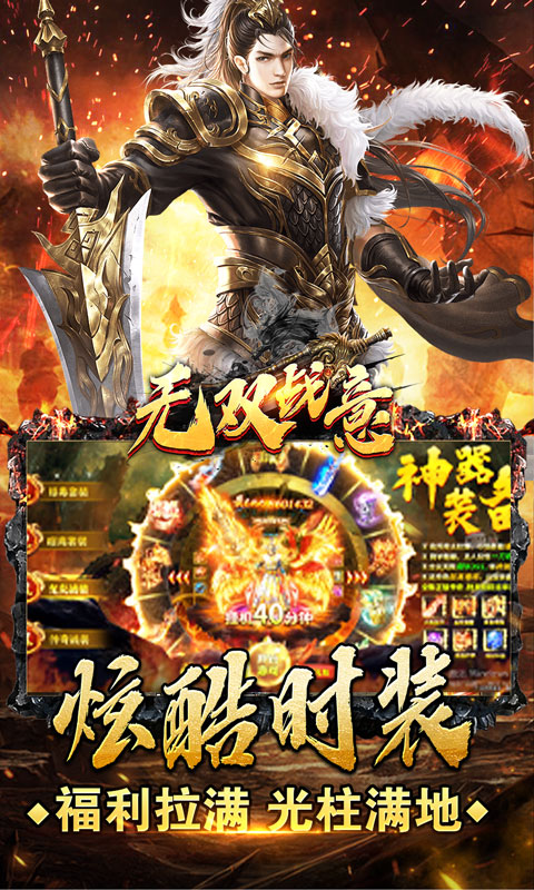 《无双战意》是一款完美还原端游的传奇手游,同时加入新鲜元素的传奇类型手游,上亿切割上线就送,精美时装,炫酷群切、地图多样、专属神器、加速装备、鞭尸神器、超高福利、免费礼包、精美时装应有尽有,超爽版本等你来战
