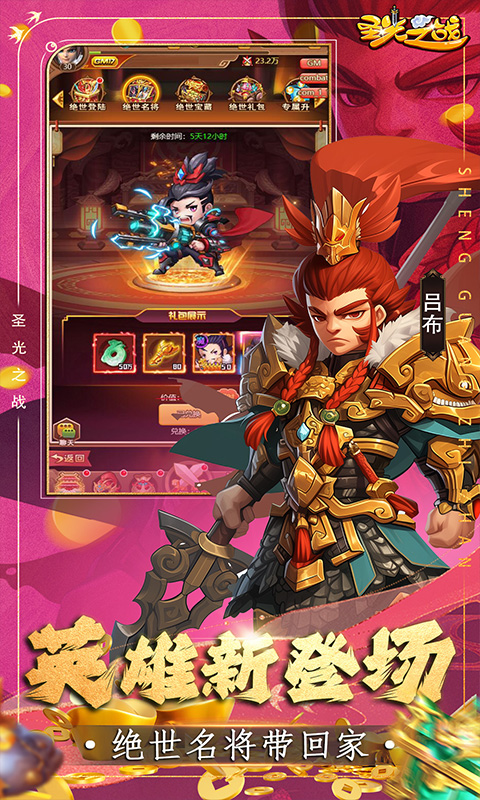 永久累充20000元:欧皇无双神将卡*500、神话貔貅自选礼包*3、招贤令*100、雷霆结晶*150、侍女属性丹*20
