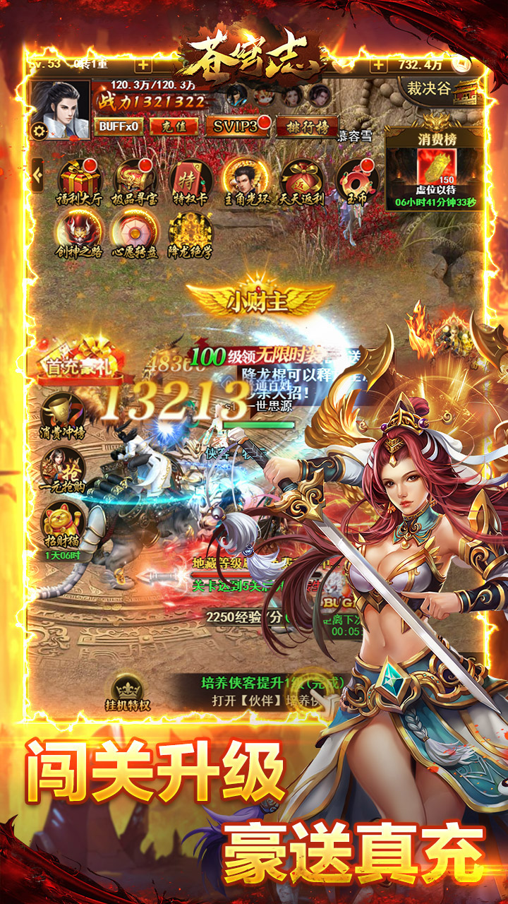 《苍穹志(0.1折壮志凌云)H5》是一款全新版本的福利游戏,全场充值尽享0.1折的优惠,进入游戏免费直升VIP15,还赠送万元充值卡礼包、各类培养丹、各种寻宝钥匙、整套GM装备等海量福利。玩家在游戏中可以体验丰富的系统玩法和日常活动,可以收集各种精美的外观幻化和强力的战斗伙伴,享受最原汁原味的游戏体验。