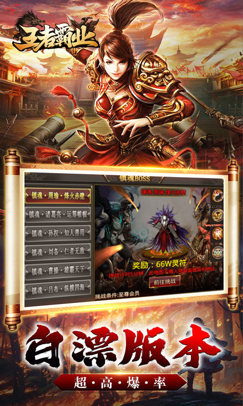 《王者霸业》是一款完美复刻端游传奇的沉默版本手游,在手游中我们加入了超多的丰富福利,还有多样的地图、专属神器、加速装备、鞭尸神器、炫酷光柱、免费礼包、超多活动一定让您玩的爽快!