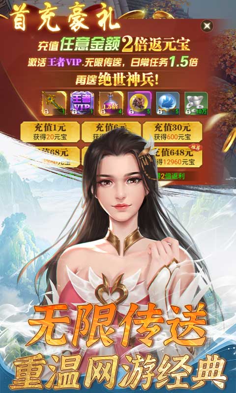 单日累充1000元:上品神器宝箱*5 神品图鉴宝箱*10 经脉突破丹*100 天仙图鉴升级符*200