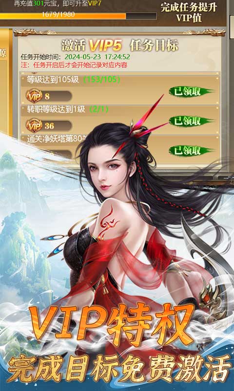 单日累充68元:5级宝石箱*2 天仙图鉴升级符*50 诛仙石·碎片*150 进阶材料箱*100