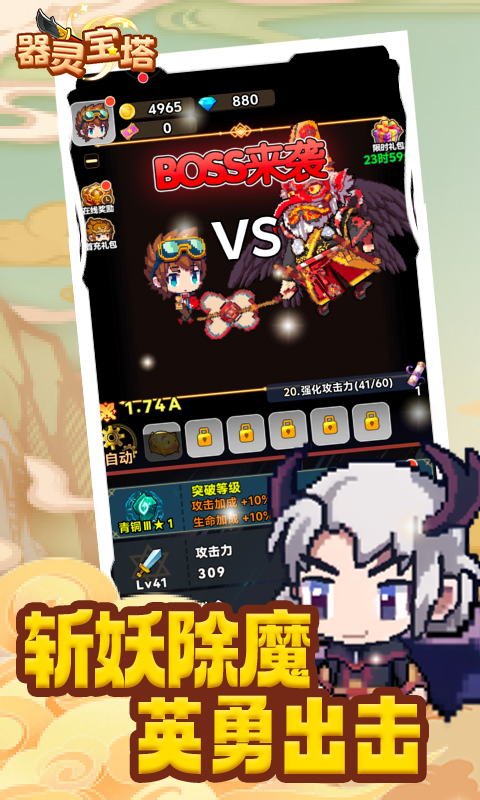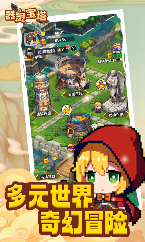 《器灵宝塔》——跨越时空的幻想征程,邀你共踏异世界冒险之旅!这不仅仅是一款游戏,而是一场融合了经典像素艺术与现代创新玩法的史诗级盛宴。在这里,你将化身为一名勇敢的领地领主,通过策略布局、资源调配,将一片荒芜之地打造成繁荣昌盛的王国。