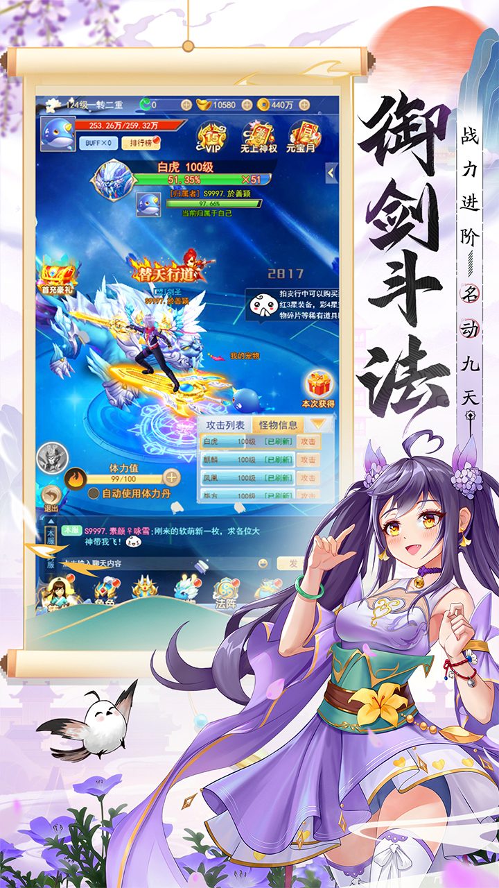 闯关就送VIP,随时离线挂机,随时上线收资源,更有各种可爱的萌宠组合,陪着你的仙侠历练之路;更有麒麟,幼龙等各种情侣组合助你一臂之力。