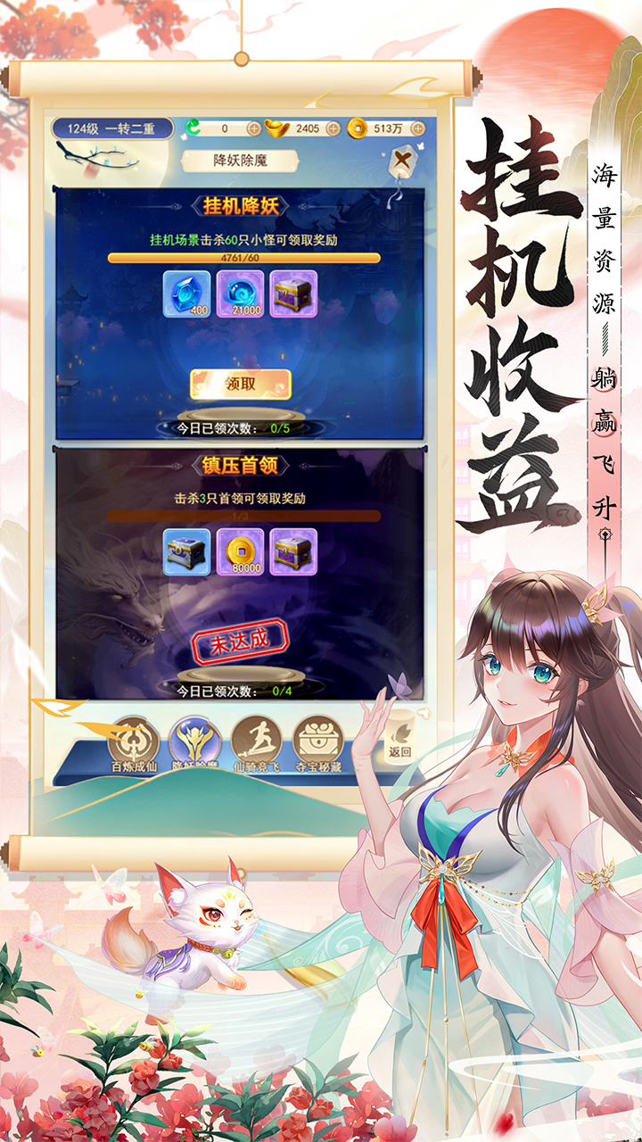 一键扫荡快速获得副本奖励。在线抢BOSS爆奖励紧张又刺激,和仙盟好友组队抢BOSS有几率得极品道具,挂机刷本无压力。