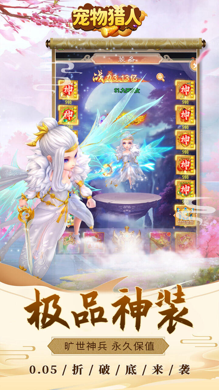 3档:累计充值200000元(实际金额1000元):寻宝兽*1、紫翼仙子*1、神装狂欢礼包*50、丹药大礼包*30
