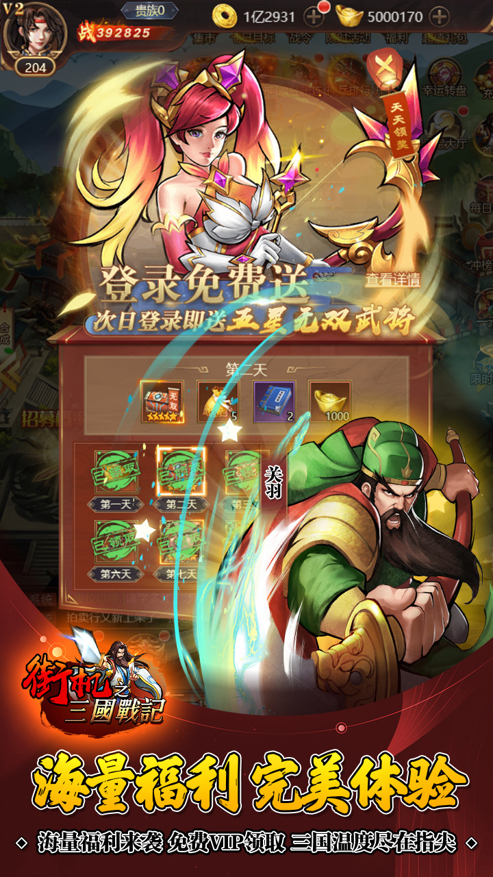 单日累计5000元:招募令*500、指定进阶丹*700、武将进阶丹*1000、武将升级丹*2000、17资质无双礼包*2、指定属性丹*20