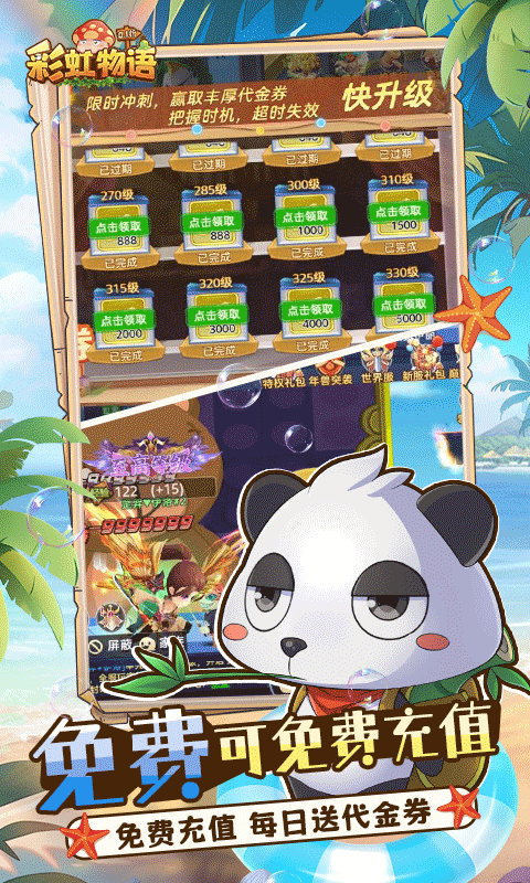 单日累充6元:宠物招募券* 5除魔勋章* 1坐骑口粮(小)* 10生命之源(小)* 10