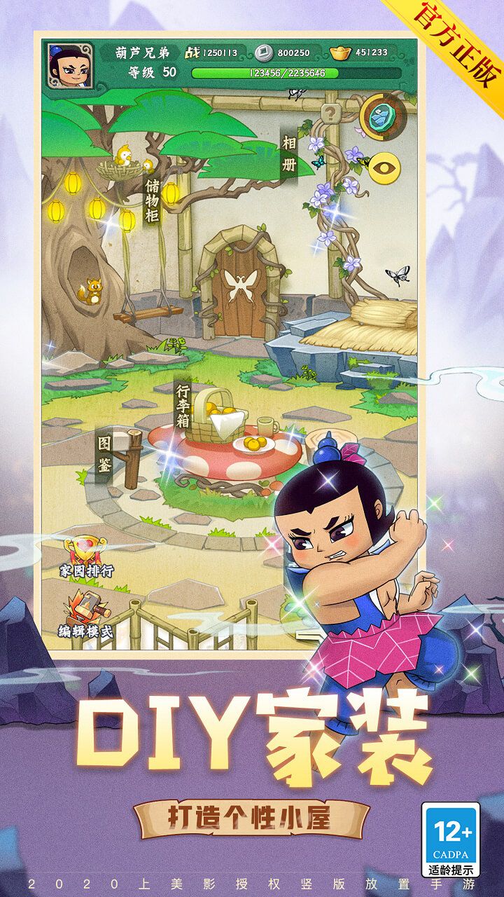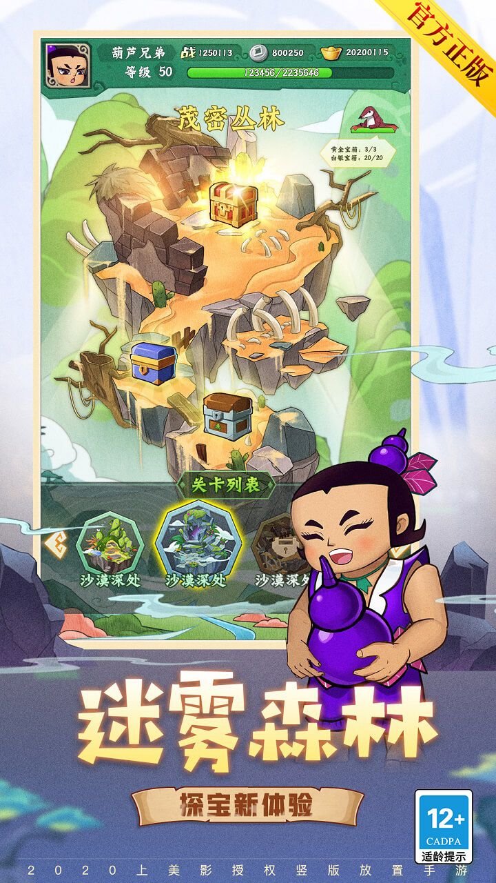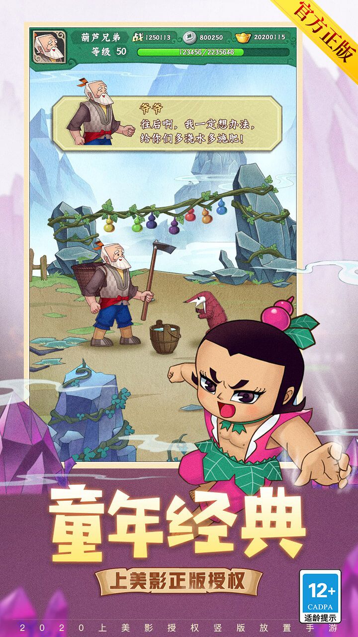 由上海美术电影制片厂正版授权,国漫休闲竖版放置手游《葫芦兄弟:七子降妖》0.1折版本上线了,游戏玩法轻松佛系,解放双手,创角即送全部红将,还有葫芦七子+校园时装七件套免费领!再送十亿元宝和五万充值,激活累计充值活动的超强体验功能,小金刚小蝴蝶立即到手!带领葫芦兄弟披荆斩棘,洞破妖洞大门,救出爷爷,全新福利0.1折版本等你来爽玩!